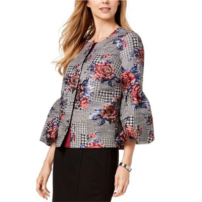 Alfani Womens Bubble Sleeve Floral Blazer Jacket