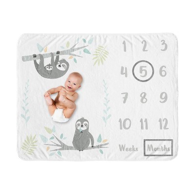 Sweet Jojo Designs Gender Neutral Baby Milestone Blanket Sloth Blue Grey and White