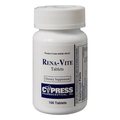 Cypress Rena-Vite Tablets Renal Multivitamin for Kidney Health with B-Complex & Folic Acid Support 100 Count
