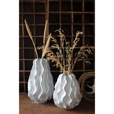 Gulches 12x14 Inch Round Terracotta Vase Natural White Finish Coastal Chic Earthy Design Home Decor For Floral Displays