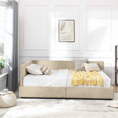 - beige upholstered bed