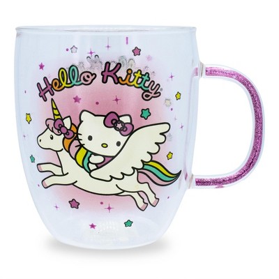 Silver Buffalo Sanrio Hello Kitty Unicorn Glass Mug With Glitter Handle | Holds 14 Ounces