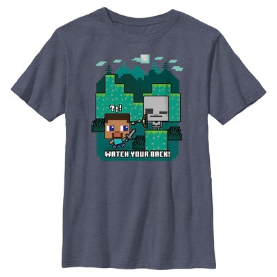 Minecraft Hostile Behavior Youth Navy Blue Crew Neck Short Sleeve T-shirt