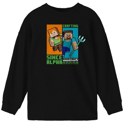 Minecraft Crafting Since Alpha Youth Black Long Sleeve Shirt
