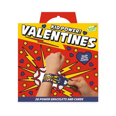 Peaceable Kingdom Valentines Cards for Kids Classroom - Set of 28 Valentines Day Gifts - Kid Power Slap Bracelets