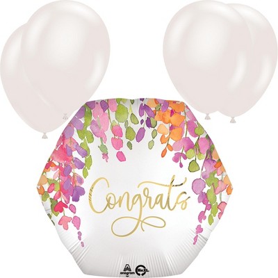LoonBalloon 23 Inch Congrats Romantic Floral Balloon with 4 Latex Balloons – Elegant & Cheerful Celebration Balloon Set