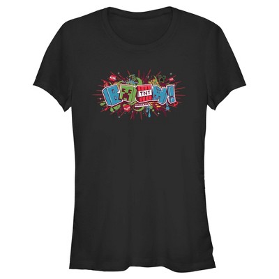 Juniors Womens Minecraft Creeper Boom Colorful T-Shirt