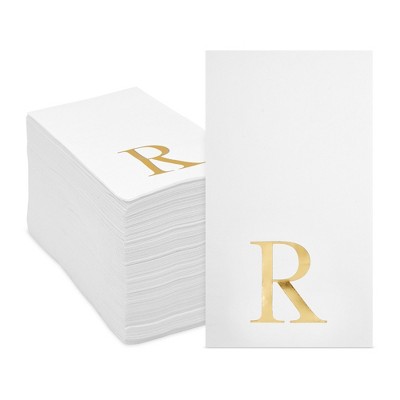 Sparkle and Bash 100 Pack Gold Foil Initial Letter R White Monogrammed Paper Napkins for Wedding Reception, Table Decorations, 4 x 8 In