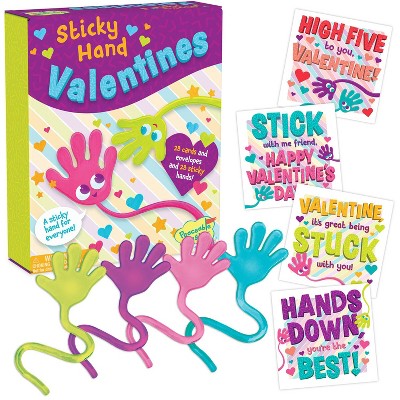 Peaceable Kingdom Valentines Cards for Kids Classroom – Set of 28 Valentine’s Day Cards with Sticky Hands Gifts