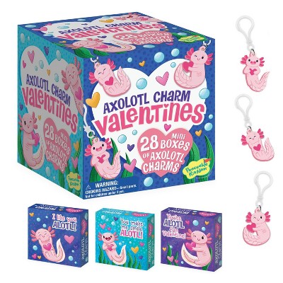 Peaceable Kingdom Valentines Cards for Kids Classroom - Set of 28 Valentines Day Gifts - Axolotl Friendship Charms