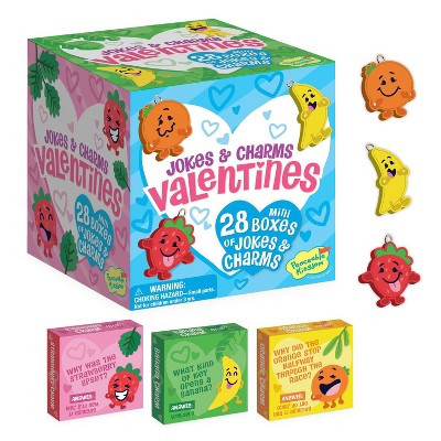 Peaceable Kingdom Valentines Cards for Kids Classroom – Set of 28 Valentine’s Day Cards with Silly Jokes and Fruit Charms