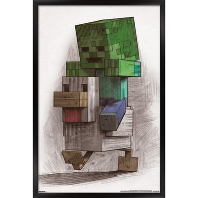 Trends International Minecraft: Doodle - Steve & Creeper Framed Wall Poster Prints