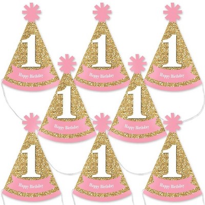 Big Dot of Happiness 1st Birthday Girl - Fun To Be One - Mini Cone First Birthday Party Hats - Small Little Party Hats - Set of 8