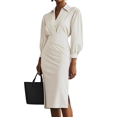 Coolmee Women's Bodycon Mini Dresses Ruched Solid Deep V Neck Dresses Long Sleeve Elegant Club Night Party Mini Dresses M Red