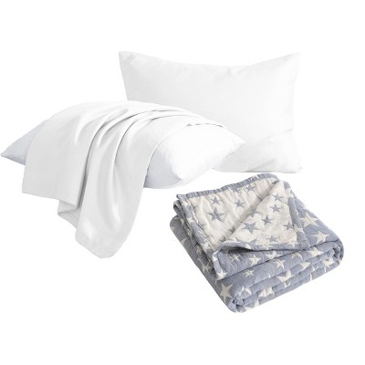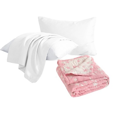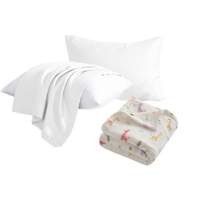 5-Piece Toddler Blanket Bedding Set – Cotton Pillows with Sateen Pillowcases and 3-Layer Blanket - NTBAY