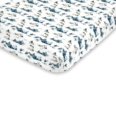 NoJo Super Soft Blue, Green, Tan and White Mountain Watercolor Fitted Mini Crib Sheet