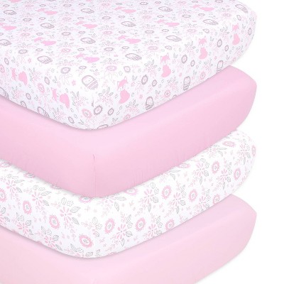 The Peanutshell Fitted Crib Sheets for Girls - Pink/White Woodland Floral - 4pk