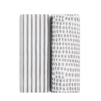 Ely's & Co. Baby Fitted Waterproof Sheet Set 100% Combed Jersey Cotton Taupe Stripes & Splash