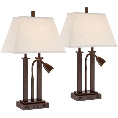 Possini Euro Design Deacon 26" High Industrial Desk Lamps Set of 2 USB Port AC Power Outlet Gooseneck Brown Bronze Finish Metal Home Office Charging