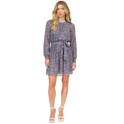 Allegra K Women's Mini Cute Heart Print Long Sleeve Ruffle Hem Dresses