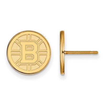 Black Bow Jewelry 14k Yellow Gold Plated Sterling Silver Boston Bruins NHL Small Disc Stud Earrings