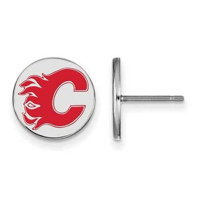 Black Bow Jewelry Sterling Silver Calgary Flames NHL Small Disc Enameled Stud Earrings