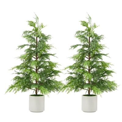 2 Pack Artificial Cedar Topiary Trees for Front Porch Decor, Artificial Christmas Tree, Faux Plants for Entryway, Living Room, Office, Apartment
