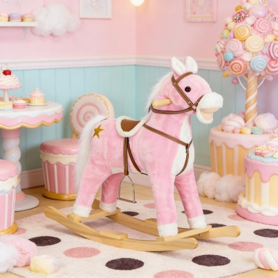 Mshliw Animal Rocker Rocking Horse for Toddlers, Plush Ride-On Horse with Wooden Base and Soft Doll, Kids Rocking Toy for Boys & Girls Ages 2�