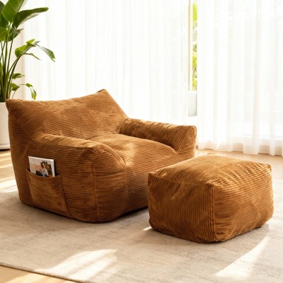 Mshliw Oversized Bean Bag Chair for Adults with Ottoman, Corduroy Lounge Chair for Living Room, Bedroom or Dorm