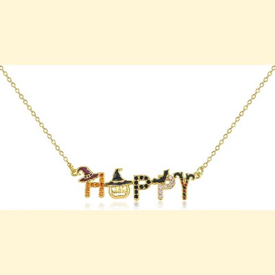 Summit Adventure 14K Gold Plated Cute Enamel Bat Witch Hat Pumpkin Pendant Necklace, Halloween Letter Charm Necklace Adjustable