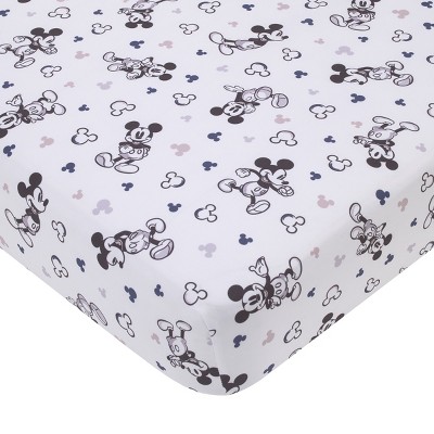 NoJo Disney Mickey Mouse Gray, Black, and White Super Soft Nursery Fitted Crib Sheet