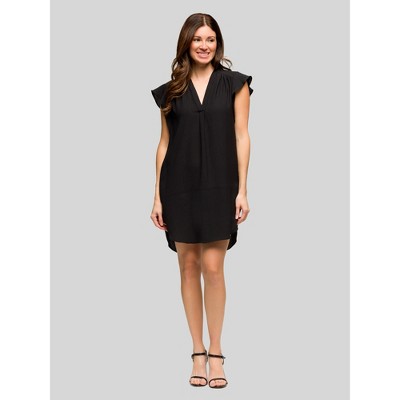 Womens V-Neck Cap Sleeve Round Hem Mini Pocket Shift Dress - 24seven Comfort Apparel™