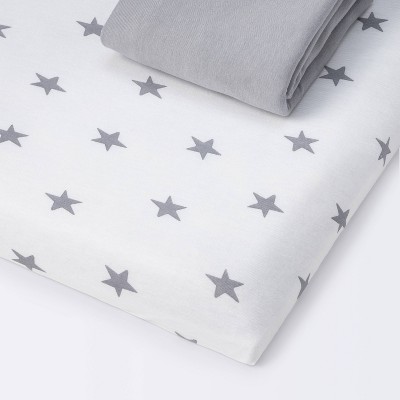 Everyday Kids 2-Pack Pack 'n Play Sheets – 100% Jersey Cotton, Blue & Gray Star and Cloud Designs, Soft Fitted Sheets for Portable or Mini Cribs