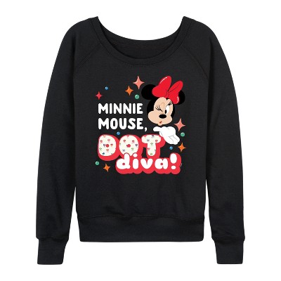 Women's - Disney - Minnie Mouse Lightweight French Terry Wide Neck Long Sleeve Graphic Shirt