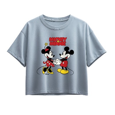 Girls' - Disney - Mickey And Minnie Holding Hands Short Sleeve Boxy Graphic T-Shirt