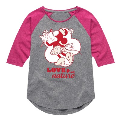 Girls' - Disney - Love Nature Minnie Mouse Shirt Tail Raglan Graphic T-shirt