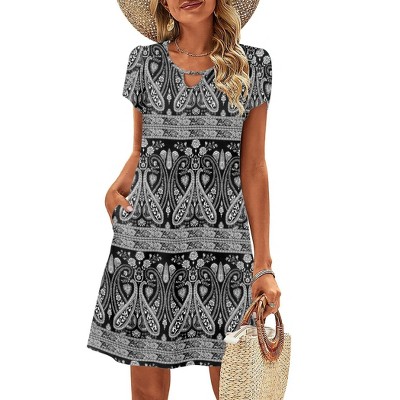 Zeagoo Women's Casual A-Line Dress with Pockets Summer Beach Floral Tshirt Dress Short Sleeve Mini Dress Flowy Sundresses