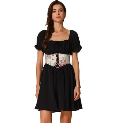 INSPIRE CHIC Women's Corset Mini Square Neck Short Sleeve Patchwork Smocked Dress