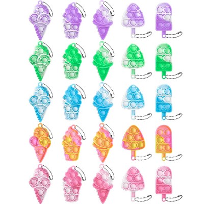 Aoibox 25pcs Mini Ice Cream Pop Keychain Fidget Toys Silicone Sensory Party Favors for Kids and Adults Anxiety Stress Relief