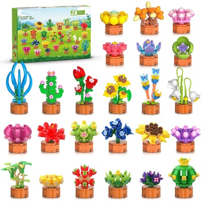 Aoibox 24 Pack Mini Flower Succulent Building Blocks Set 3.6mm 1012pcs Botanical Bonsai for Kids Classroom Prizes Easter Birthday