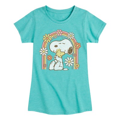 Girls' - Peanuts - Retro Flower Rainbow Fitted Short Sleeve Graphic T-Shirt