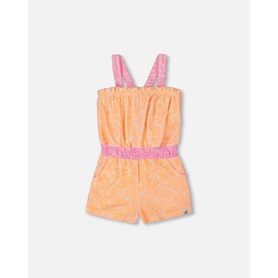 Deux par Deux Girl Printed Terry Cloth Romper Vibrant Orange and White