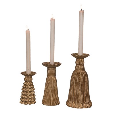 Gulches Bead Accent Slender [Bronze] Aluminum Taper Candle Holder 3-Pack