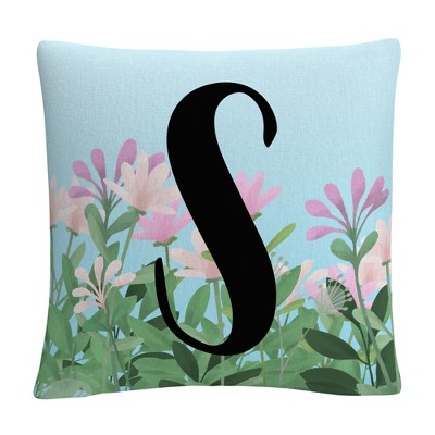 Pink Floral Garden Letter Illustration By Abc 16 X 16 Decorative Throw Pillow by Trademark Fine Art