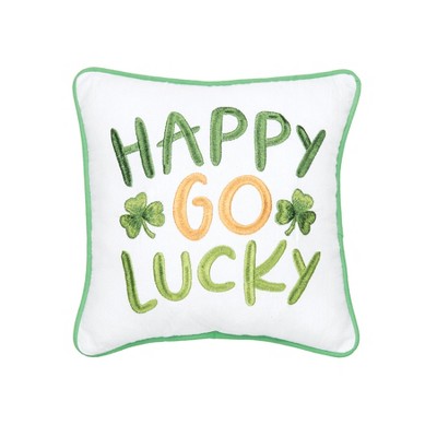 C&F Home St. Patrick's Day "Happy Go Lucky" Embroidered Small/Petite Cotton Accent Pillow, 10" x 10"