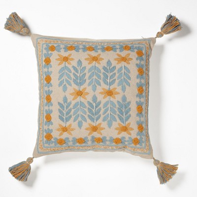 16"x16" Flowery Love with Easter Bunnies Square Throw Pillow Yellow/Blue - e by design: Indoor Polyester Twill, Sewn Seam Closure