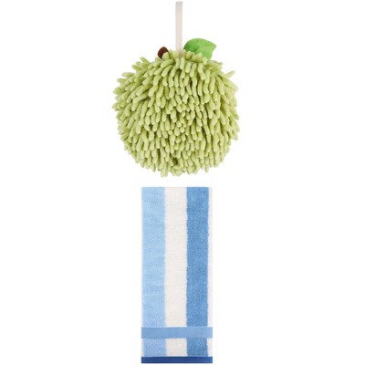 REGALWOVEN Soft Absorbent Cute Fuzzy Hanging Decorative Bathroom Chenille Hand Towel 6" x 15"/7" x 7" 2 Packs