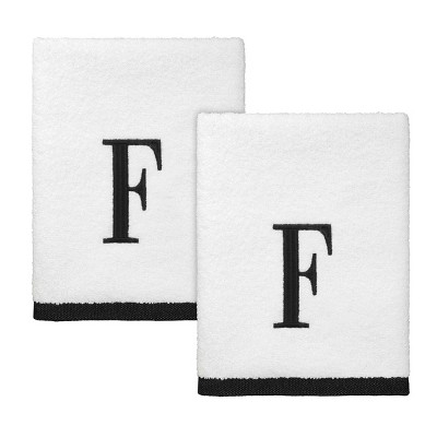 BC BARE COTTON Monogrammed Hand Towel, 100% Turkish Cotton - Set of 2 - White - Black Block