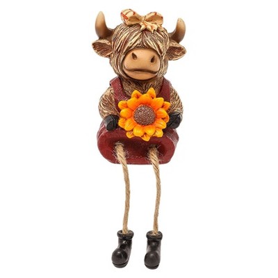The Lakeside Collection Highland Cow Shelf Sitter Girl With Sunflower Or Boy With Pumpkin -