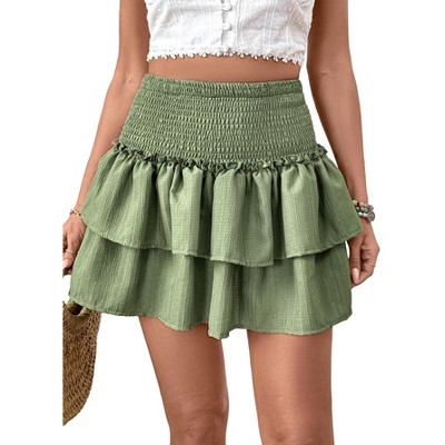INSPIRE CHIC Women's Mini Skirt Button Decor Elastic Waist Embroidered A-Line Skirts